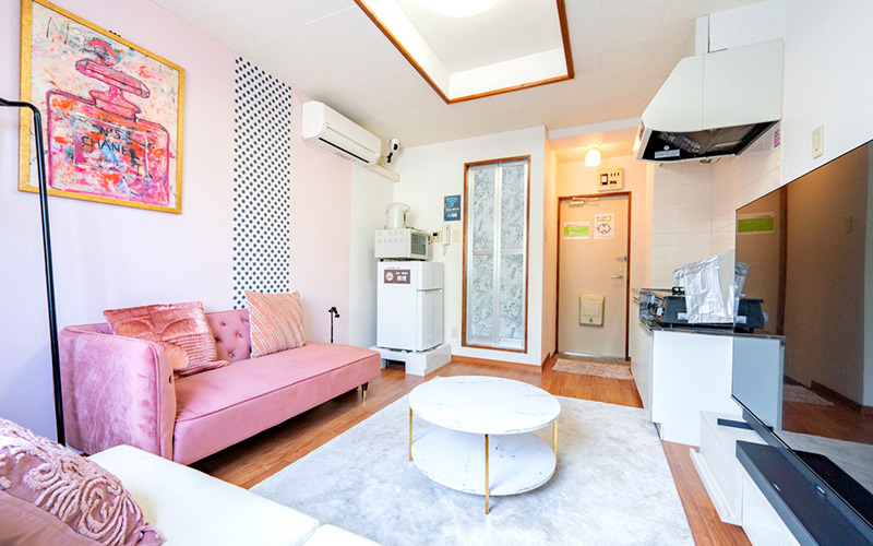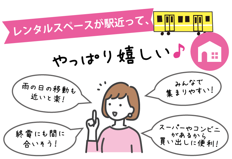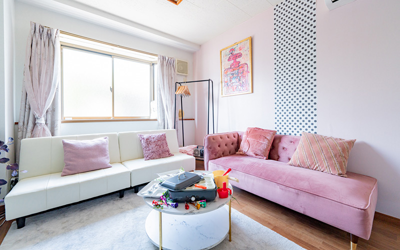 下北沢駅 徒歩5分の好立地にあります。水玉をテーマにしたピンク&オフホワイトの”カワイイ”レンタルスペース。女子会やママ会、パーティー、デートや打ち合わせ人気です。