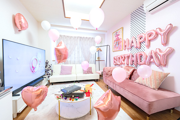 バルーンやガーランド、風船を持ち込んでタップリ飾り付けができます。サプライズパーティ―や推し会にも人気です。